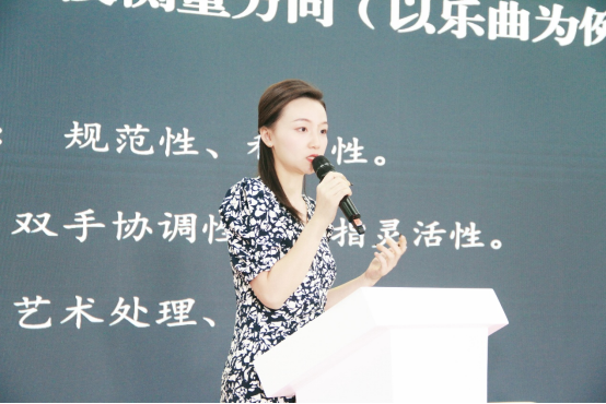 李婉老师重点详细阐述了不同学习阶段的教学侧重方向。对于初级教学,要注重规范性、科学性;中级教学要注重学生双手协调性、手指灵活性方面的锻炼;高阶段则着重提升学员的音乐表现力与曲目驾驭能力,引导学员深入理解乐曲内涵,从情感表达、节奏处理等方面进行细致打磨。李婉老师结合具体曲目深入浅出地讲解教学要点,让在场的教育从业者深刻认识到,不同阶段的精准教学对于学员成长的重要性,也为社会培训机构的分层教学提供了极具参考价值的范例。