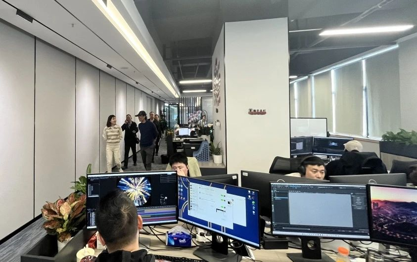 菲宇文化科技集团常务副总裁杨方军带领薛凯一行参观了集团数字化展厅、创意研发中心和影视创作中心,介绍了集团多媒体技术的研发、产业发展以及落地运营项目等。
