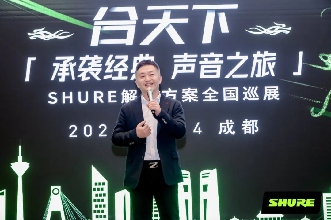 2024年11月14日,“合天下-承袭经典 声音之旅”SHURE解决方案全国巡展成都站在JW万豪酒店举办。邀请西南地区合作伙伴、专家老师、四川音乐学院师生等共襄盛举,围绕SHURE在专业音频、会议系统、舞台演出、内容创作等多个领域的创新、应用,展开了深入的交流与讨论。中国演艺设备技术协会四川省办事处作为支持单位,组织行业专家及会员企业代表参与此次活动,共同探索SHURE的最新技术和解决方案。