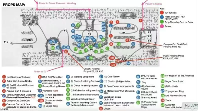 模块化场景组:市井生活的全景还原除核心装置外,舞台散落着12 组模块化市井场景,均为波多黎各日常片段的精准复刻:街头刨冰摊(Piragua):售卖当地特色冰品,摊主身着传统服饰;临时美甲店:还原拉美社区常见的街头美容服务;多米诺骨牌桌:老年男子围坐游戏,是波多黎各社区社交的经典场景;简易庇护所:用煤渣块搭建,隐喻灾后重建的艰难与坚韧。这些场景由25台专用推车运输,每台推车尺寸严格控制在2.4m×0.8m、重量≤5000磅,确保不损伤草坪。场景间无固定边界,通过“活体植物”与舞者流动连接,形成“开放式小镇”的沉浸式体验。