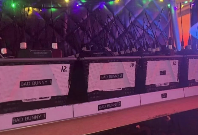 核心技术挑战无顶棚:无法采用传统吊挂式线阵列,需设计地面移动扩声方案,解决远距离覆盖与声压均匀度问题;射频环境极端:现场超200套无线麦克风、监听系统,叠加赛事通信设备,需实现高密度射频管理与抗干扰;双链路并行:现场扩声(7万+观众)与电视直播(全球过亿观众)音频独立链路,零延迟同步,且互不干扰;音乐特性适配:Bad Bunny主打雷鬼顿、拉丁流行,低频冲击力与中高频清晰度要求极高,需精准调校低频覆盖与动态控制。