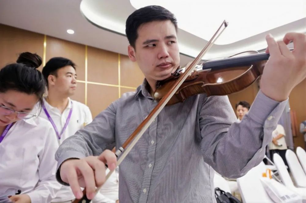 钱总还介绍到,这次活动创造了中国提琴行业的两个“第一次”:首次汇聚制作界、演奏界、教育界和产业界的顶级专家共同参与,为中国提琴产业的发展提供建议;首次由规模提琴企业举办如此高规格的综合测评活动。这是对中国新生代提琴企业的一次全面检阅,也展现了他们对中国提琴产业在制作工艺、手感、音色和品牌提升方面的自信。他们的目标非常明确:让世界相信中国制造,让全球小提琴演奏家和教育家认可中国提琴品质。