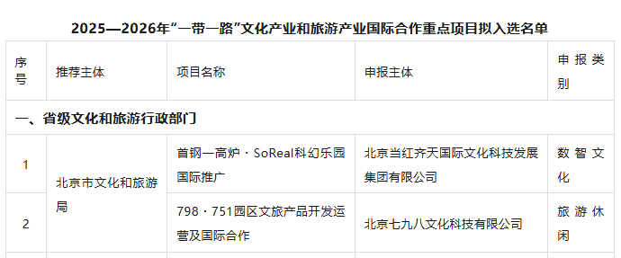 文化和旅游部产业发展司关于2025—2026年“一带一路”文化产业和旅游产业国际合作重点项目拟入选名单的公示