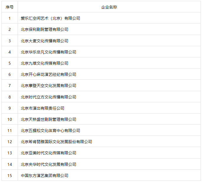 北京市:2025年度演艺企业类拟支持项目公示,拟支持15家企业