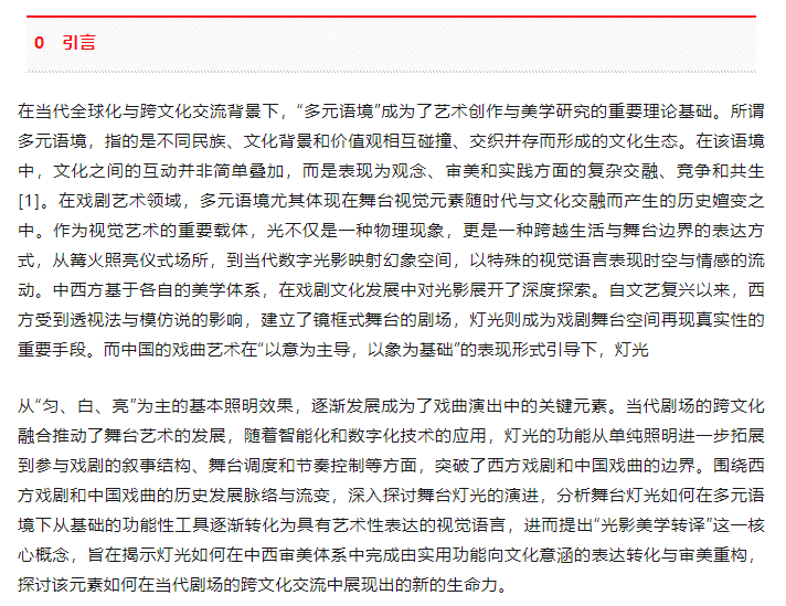 (图文来源:《演艺科技》2025年第二期《光影的美学转译——多元语境下的中西戏剧灯光视觉构建》,作者 | 侯包家铭,冯德仲。除原创作品外,本平台所使用的文章、图片、视频及音乐属于原权利人所有,仅用于行业学习交流,并不用于商业用。文中观点为作者独立观点,因客观原因,或会存在不当使用的情况,如,部分文章或文章部分引用内容未能及时与原作者取得联系,或作者名称及原始出处标注错误等情况,非恶意侵犯原权利人相关权益,敬请相关权利人谅解并与我们联络第一时间处理,共同维护良好的网络创作环境。)