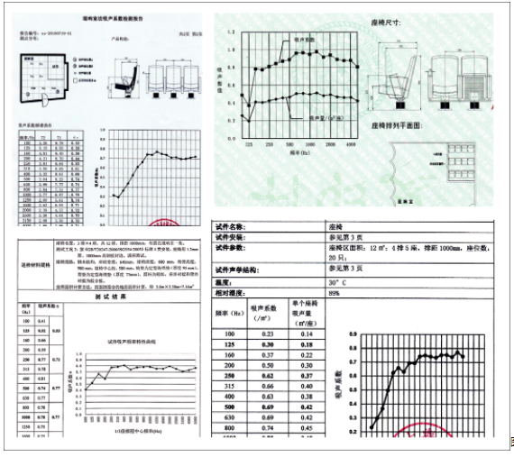 通过声学实验和模拟,综合评价座椅的声学性能,并根据评价结果进行改进。可以建立反馈机制,收集采购者、观众的听觉体验和建议,及时调整座椅设计和材料选择,提升整体声学效果。图13为建筑设计单位对某些型号的座椅进行声学测试的报告(局部)。