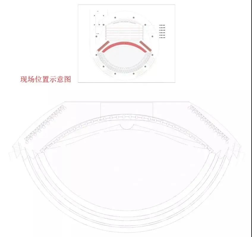 主舞台区舞美造型由5个圆拱组成。灯光根据舞美设计理念,在圆拱后面分别加了灯光架,与舞美共同组成弧形造型,以增强造型层次,使整体效果更加趋于完美。