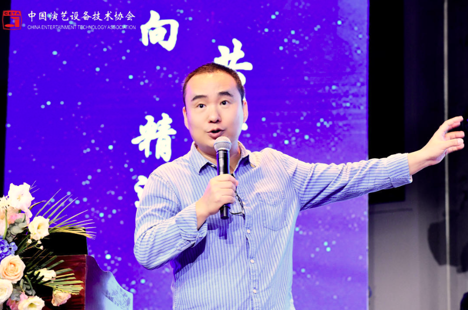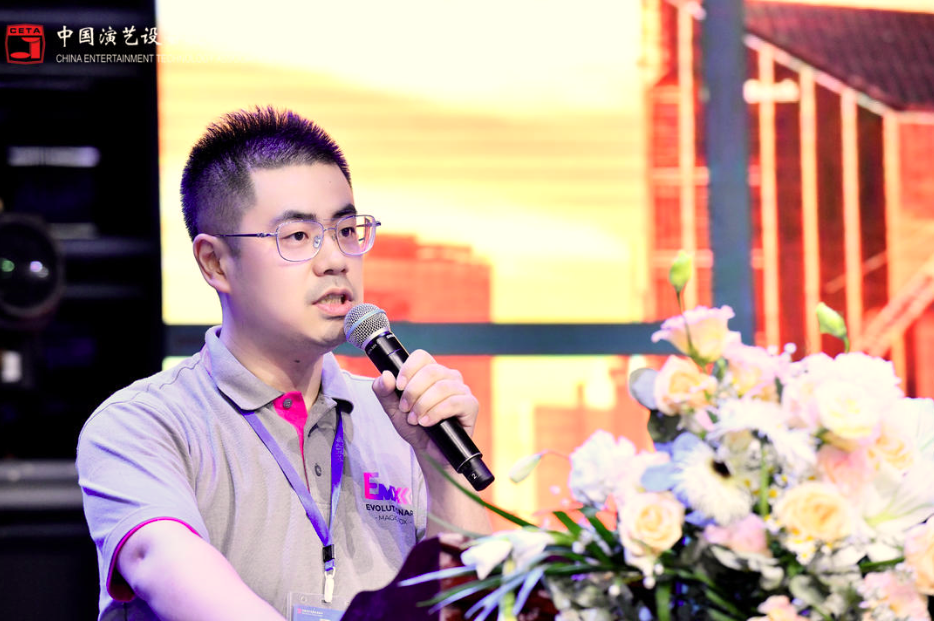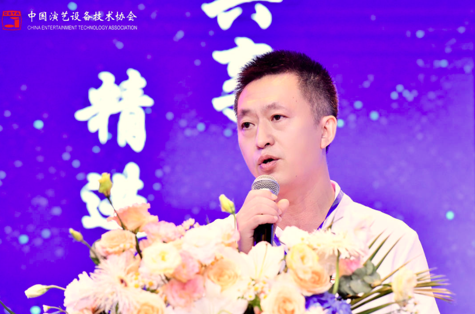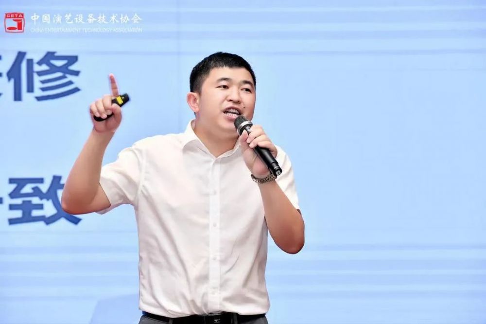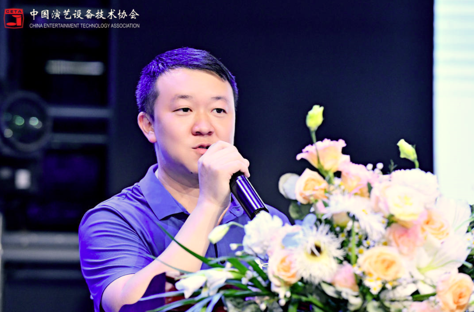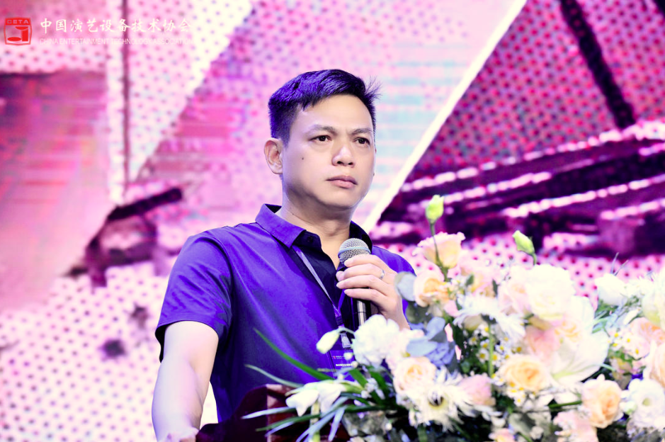 浙江大丰实业股份有限公司文旅演艺设计总监徐韬围绕“文旅演艺技术与创新”具体介绍了大丰作为文化数字化装备制造商跨界破圈赋能的文化自信与软硬实力。还通过《中国出了个毛泽东》大型中国革命历史传奇实景剧、《今夕共西溪》实景演艺秀及《2018年雅加达亚运会闭幕式-杭州时间》等项目具体介绍沉浸式扩声、LED运动冰屏、自动追光、演艺总控等文旅项目的声光电新技术。