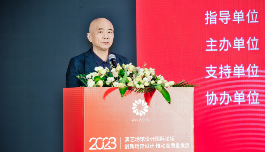 他首先对各位专家学者冒着台风莅临参会,表示热烈地欢迎和感谢!本次论坛面对创新场馆设计的挑战与机遇,邀请行业领军专家分享宝贵经验与深刻见解,通过与会各方深入互动交流和探讨,期待推动我国演艺场馆设计迈向新的高度,共享智慧,共创未来。