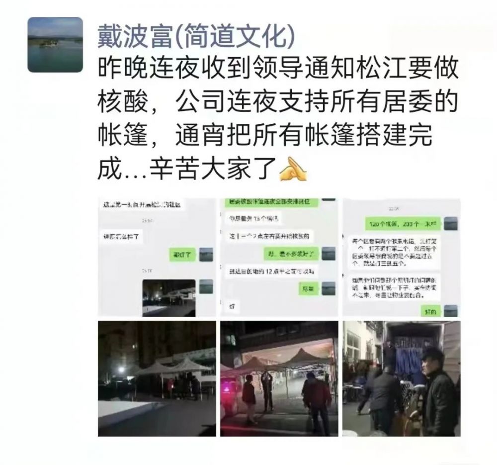 会员单位上海简道文化传播有限公司全力支援社区核酸检测帐篷并通宵搭建完成。