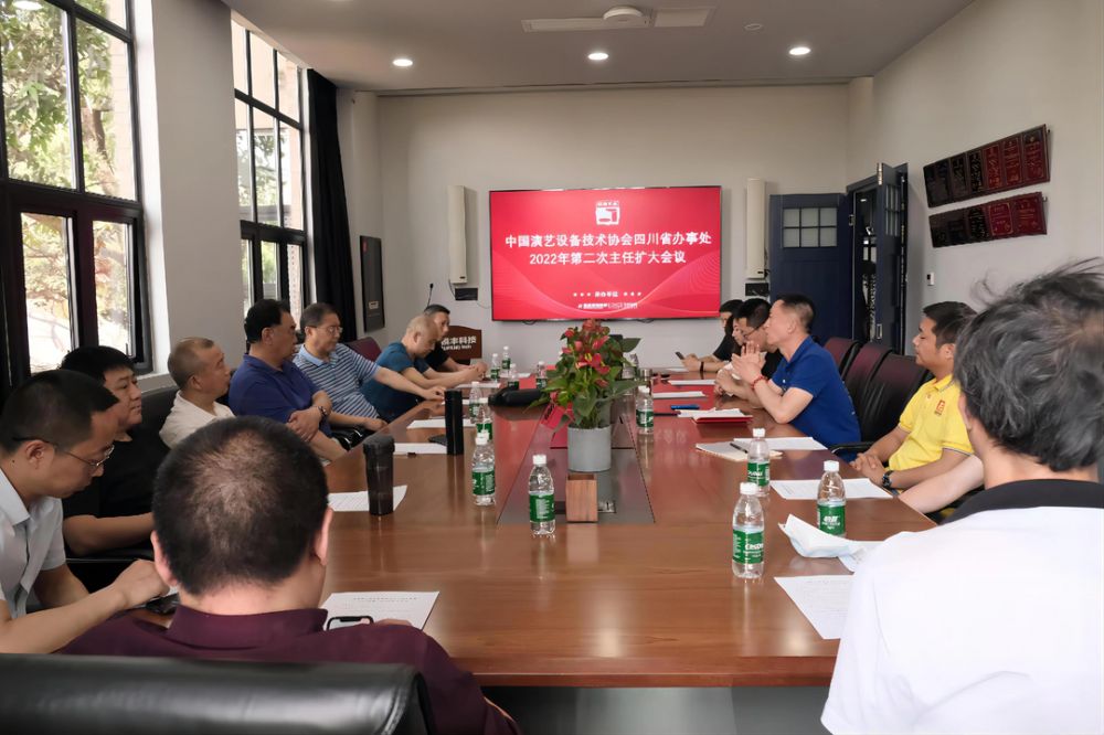 4月28日,中国演艺设备技术协会四川省办事处在锐丰西蜀科技有限公司召开了2022年第二次主任扩大会议。办事处主任燕泽山因事请假,会议由常务副主任薛凯主持。