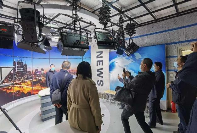 办事处一行人在学院工作人员的陪同下考察了学院设立的多个不同类型的直播间、导播室、融媒体中心、演播室、新媒体教室、综艺厅等。