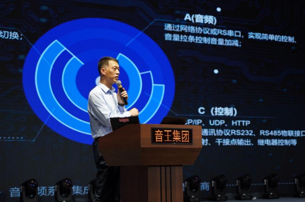 利亚德浙江蓝显科技总经理赵帅作《迎接显控视听新时代》主题分享,行业专家裘钰作《高倍取样的应用推广》主题分享。