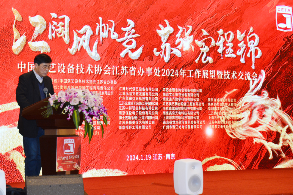 龙腾虎跃旌旗动,龙盘虎踞春意浓。1月19日,在一派欢快祥和、意气风发的氛围中,中国演艺设备技术协会江苏省办事处2024年工作展望暨技术交流会在南京双门楼宾馆隆重召开。